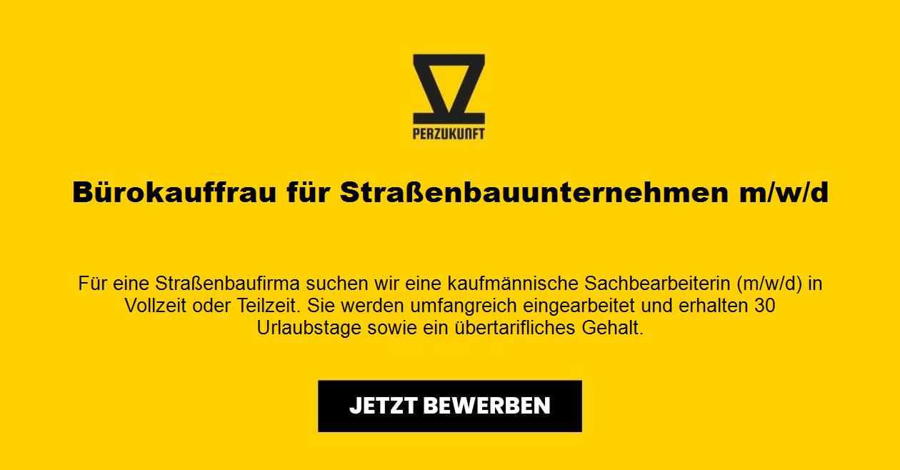 Für eine Straßenbaufirma suchen wir eine kaufmännische Sachbearbeiterin (m/w/d) in Vollzeit oder Teilzeit. Wir freuen uns Sie kennenzulernen!