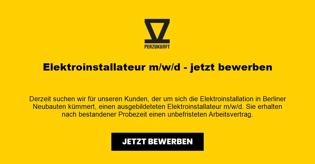 Derzeit suchen wir für unseren Kunden, der um sich die Elektroinstallation in Berliner Neubauten kümmert, einen ausgebildeteten Elektroinstallateur m/w/d. Sie erhalten nach bestandener Probezeit einen unbefristeten Arbeitsvertrag.