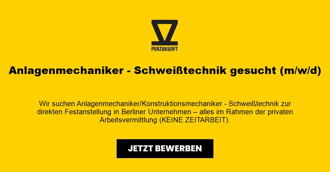 Wir suchen Anlagenmechaniker/Konstruktionsmechaniker - Schweißtechnik zur direkten Festanstellung in Berliner Unternehmen – alles im Rahmen der privaten Arbeitsvermittlung (KEINE ZEITARBEIT). FINDEN SIE EINE BERUFLICHE HERAUSFORDERUNG!!