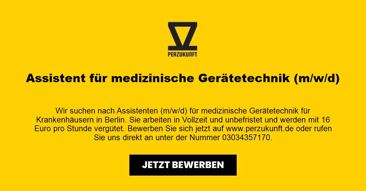 Wir suchen nach Assistenten (m/w/d) für medizinische Gerätetechnik für Krankenhäusern in Berlin. Sie arbeiten in Vollzeit und unbefristet und werden mit 19,51 Euro pro Stunde vergütet.