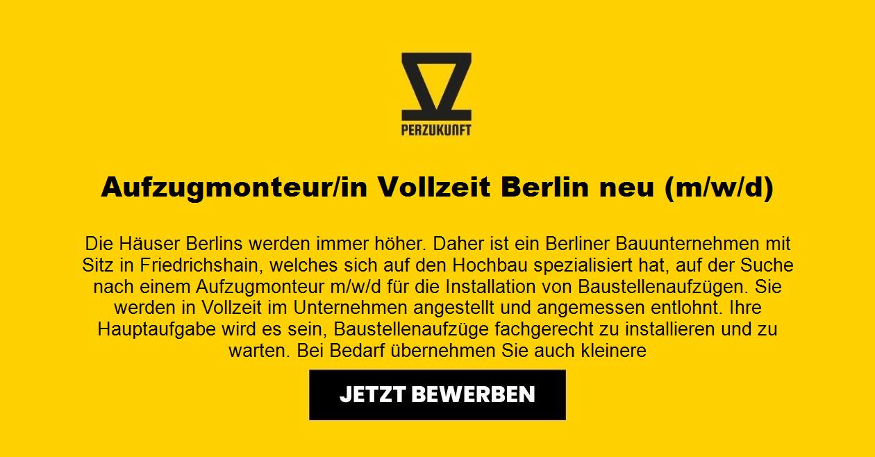 Die Häuser Berlins werden immer höher. Daher ist ein Berliner Bauunternehmen mit Sitz in Friedrichshain, welches sich auf den Hochbau spezialisiert hat, auf der Suche nach einem Aufzugmonteur m/w/d für die Installation von Baustellenaufzügen. Sie werden in Vollzeit im Unternehmen angestellt und angemessen entlohnt. Ihre Hauptaufgabe wird es sein, Baustellenaufzüge fachgerecht zu installieren und zu warten. Bei Bedarf übernehmen Sie auch kleinere Aufgaben aus dem Bereich der Konstruktionstechnik. Aufzugmonteur/in Vollzeit Berlin-Friedrichshain