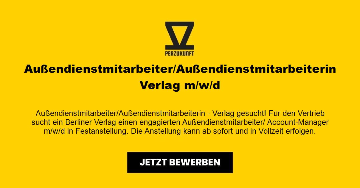 Außendienstmitarbeiter/Außendienstmitarbeiterin - Verlag gesucht! Für den Vertrieb sucht ein Berliner Verlag einen engagierten Außendienstmitarbeiter/ Account-Manager m/w/d in Festanstellung. Die Anstellung kann ab sofort und in Vollzeit erfolgen.