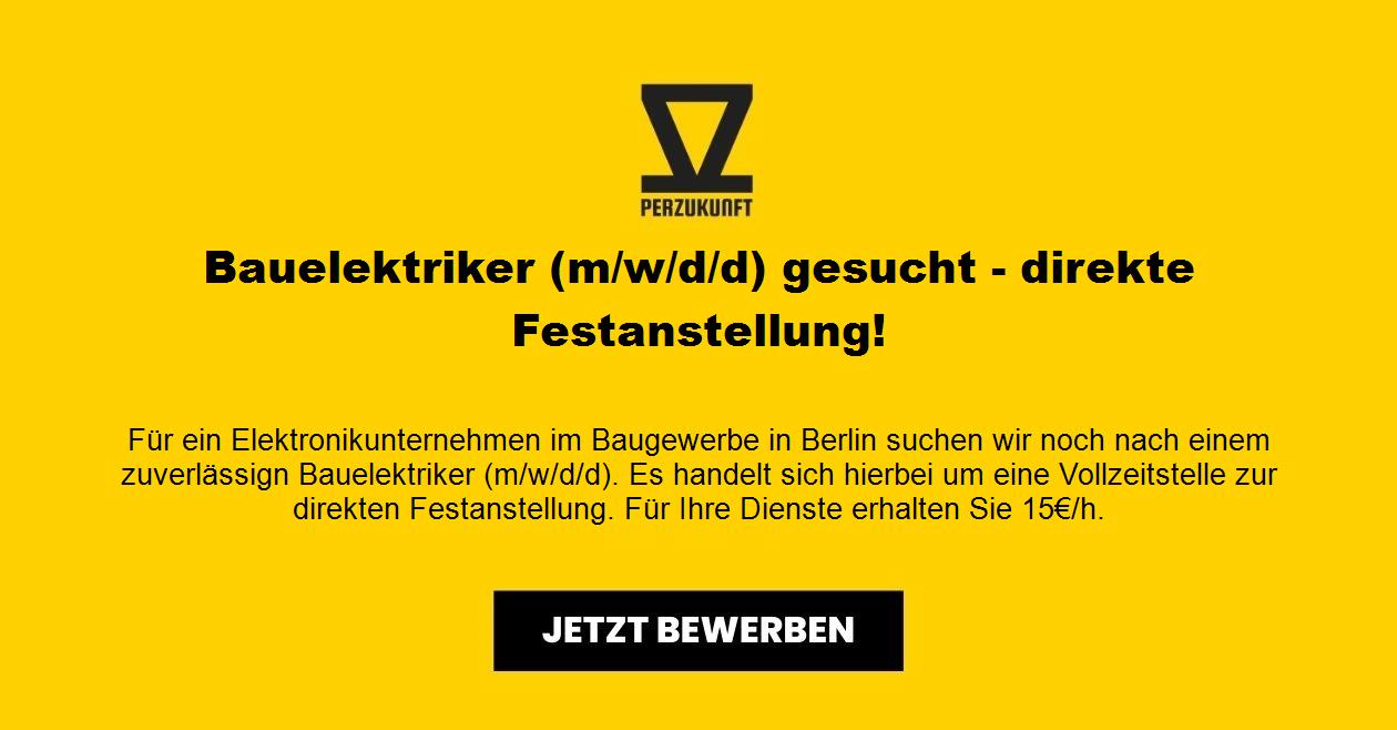 Für ein Elektronikunternehmen im Baugewerbe in Berlin suchen wir noch nach einem zuverlässign Bauelektriker (m/w/d). Es handelt sich hierbei um eine Vollzeitstelle zur direkten Festanstellung. Für Ihre Dienste erhalten Sie 17,11€/h.