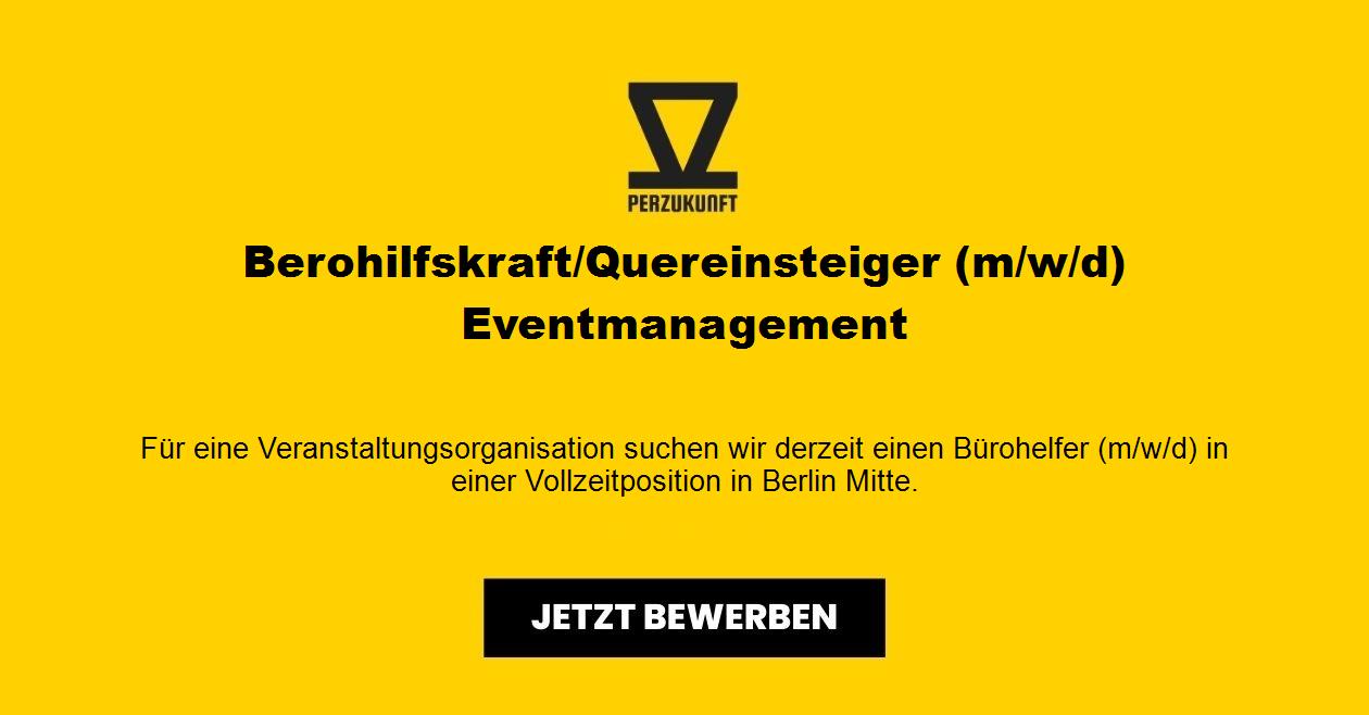 Für [eine] Veranstaltungsorganisation suchen wir derzeit einen Bürohelfer (m/w/d) in einer Vollzeitposition in Berlin-Mitte.