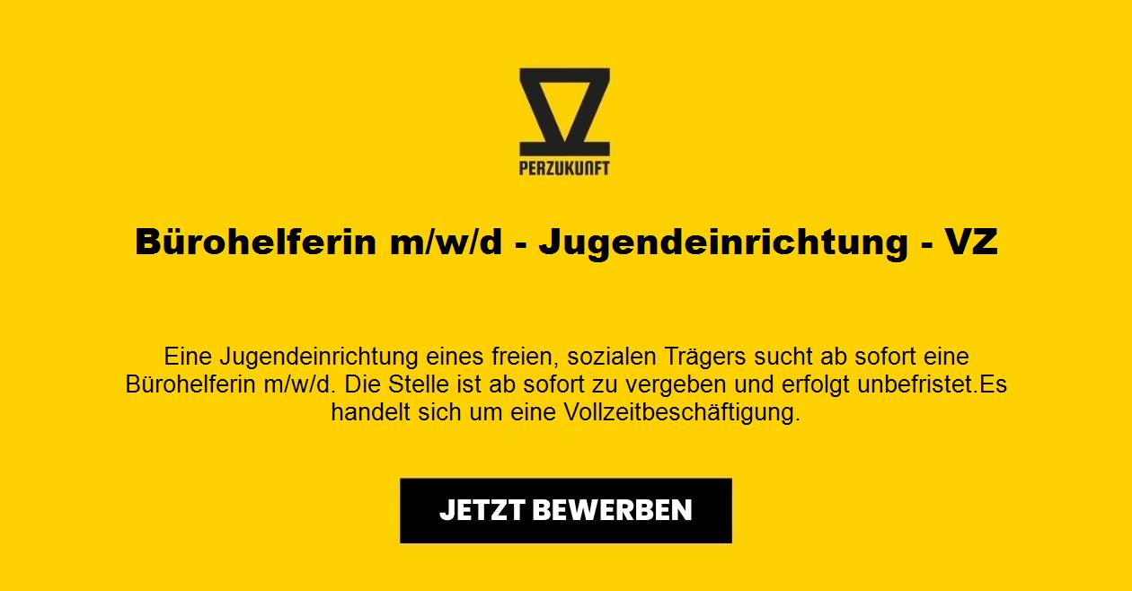 Eine Jugendeinrichtung eines freien, sozialen Trägers sucht ab sofort eine Bürohelferin m/w/d. Die Stelle ist ab sofort zu vergeben und erfolgt unbefristet. Es handelt sich um eine Vollzeitbeschäftigung.