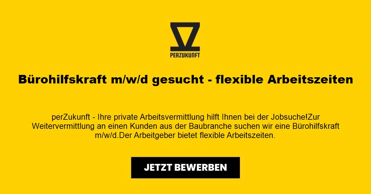 Zur Weitervermittlung an einen Kunden aus der Baubranche suchen wir eine Bürohilfskraft m/w/d. Der Arbeitgeber bietet (flexible) Arbeitszeiten.
