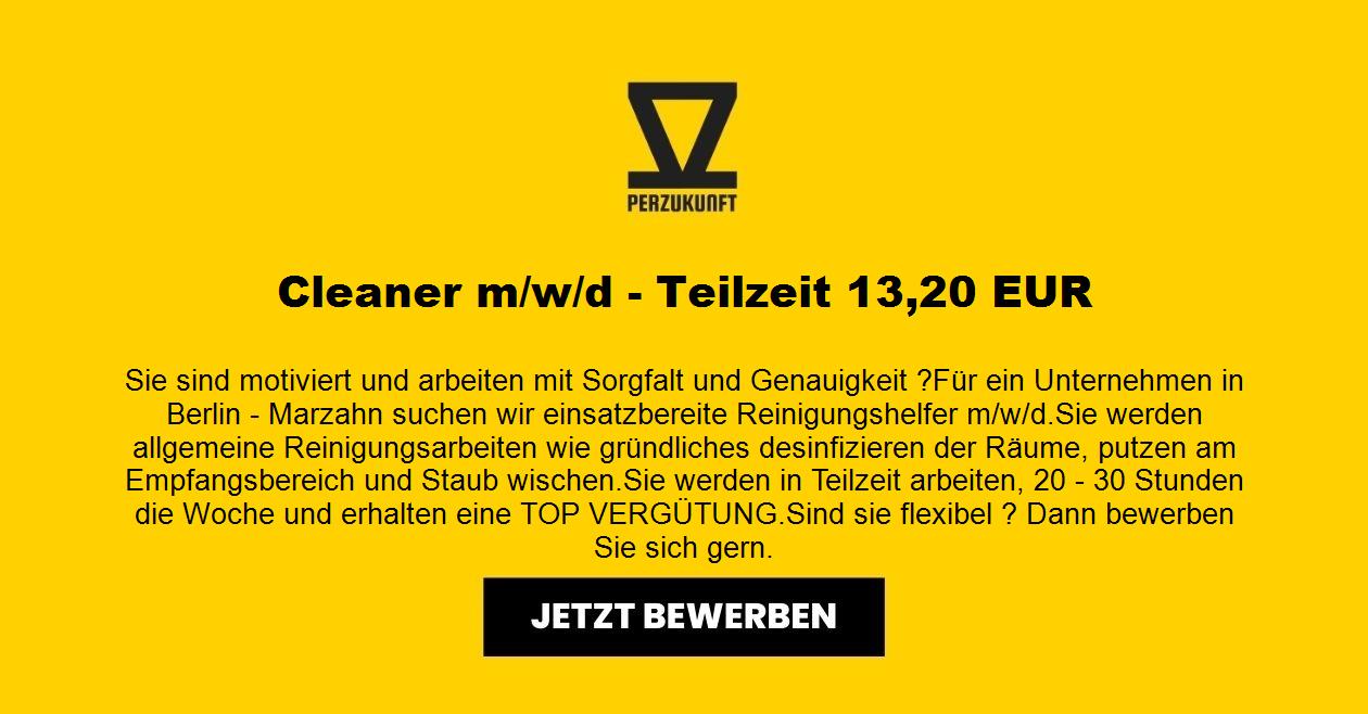 Sie sind motiviert und arbeiten mit Sorgfalt und Genauigkeit ? Für ein Unternehmen in Berlin - Marzahn suchen wir einsatzbereite Reinigungshelfer m/w/d. Sie werden allgemeine Reinigungsarbeiten wie gründliches desinfizieren der Räume, putzen am Empfangsbereich und Staub wischen. Sie werden in Teilzeit arbeiten, 20 - 30 Stunden die Woche und erhalten eine TOP VERGÜTUNG. Sind sie flexibel ? Dann bewerben Sie sich gern.