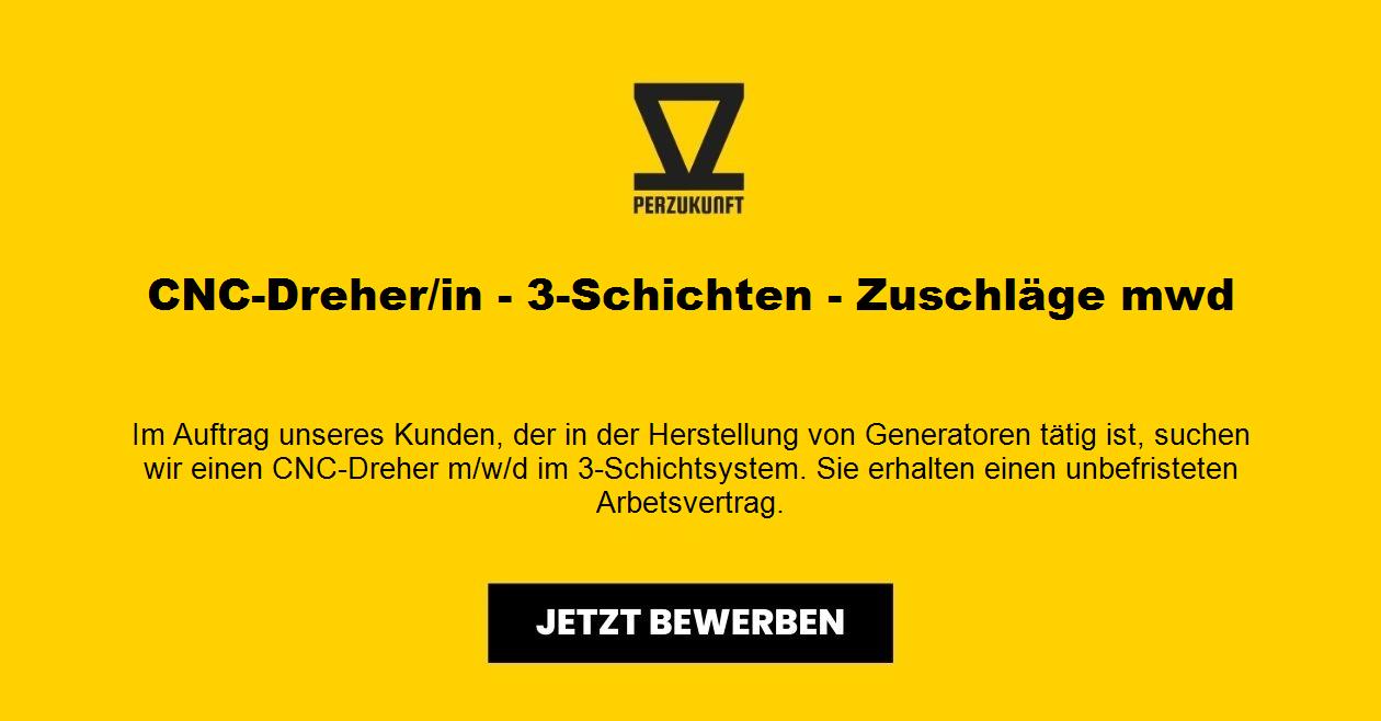 Im Auftrag unseres Kunden, der in der Herstellung von Generatoren tätig ist, suchen wir einen CNC-Dreher m/w/d im 3-Schichtsystem.