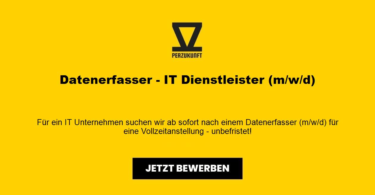 Für ein IT-Unternehmen suchen wir ab sofort nach einem Datenerfasser (m/w/d) für eine Vollzeitanstellung - unbefristet!