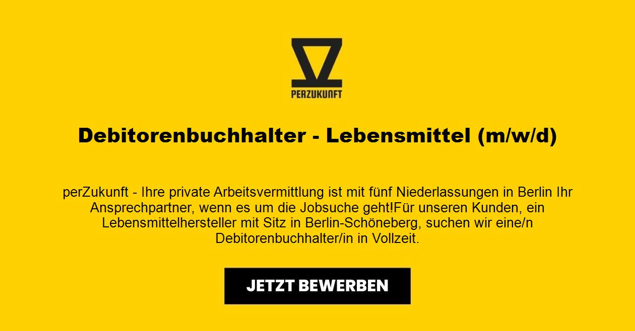 PerZukunft - Ihre private Arbeitsvermittlung ist mit fünf Niederlassungen in Berlin Ihr Ansprechpartner, wenn es um die Jobsuche geht! Für unseren Kunden, ein Lebensmittelhersteller mit Sitz in Berlin-Schöneberg, suchen wir eine/n Debitorenbuchhalter/in in Vollzeit.