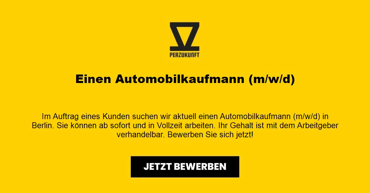 Im [Auftrag] eines Kunden suchen wir aktuell einen Automobilkaufmann (m/w/d) in Berlin. Sie können ab sofort und in Vollzeit arbeiten. Ihr Gehalt ist mit dem Arbeitgeber verhandelbar. Bewerben Sie sich jetzt!