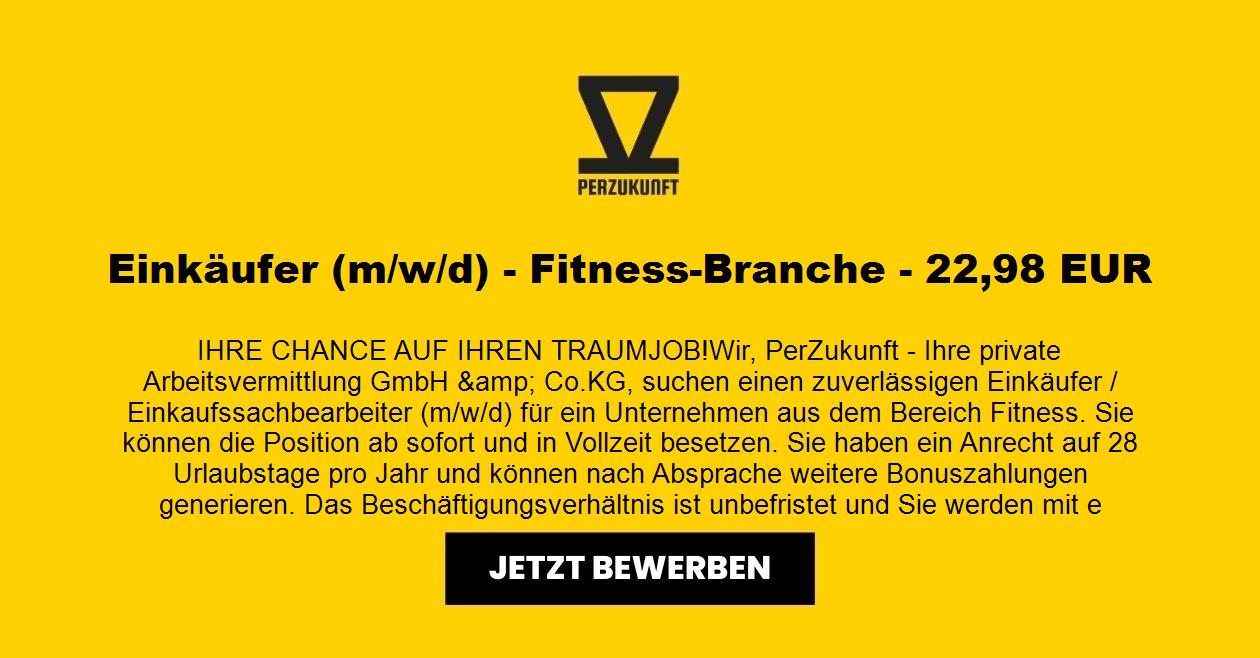 IHRE CHANCE AUF IHREN TRAUMJOB! Wir, PerZukunft - Ihre private Arbeitsvermittlung GmbH & Co.KG, suchen einen zuverlässigen Einkäufer / Einkaufssachbearbeiter (m/w/d) für ein Unternehmen aus dem Bereich Fitness. Sie können die Position ab sofort und in Vollzeit besetzen. Sie haben ein Anrecht auf 28 Urlaubstage pro Jahr und können nach Absprache weitere Bonuszahlungen generieren. Das Beschäftigungsverhältnis ist unbefristet und Sie werden mit einem Gehalt von 40,98- € pro Monat vergütet. Der Arbeitsort befindet sich in Berlin, mit direkter Verbindung zur B2. Bewerben Sie sich bei uns!