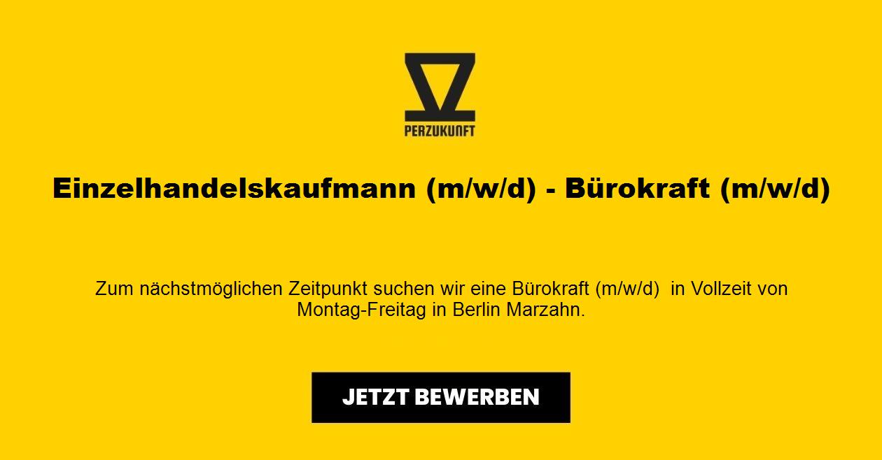 Zum nächstmöglichen Zeitpunkt suchen wir eine Bürokraft (m/w/d) in Vollzeit von Montag-Freitag in Berlin Marzahn.