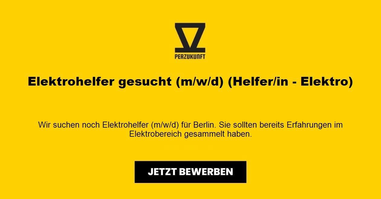 Wir suchen noch Elektrohelfer (m/w/d) für Berlin. Sie sollten bereits Erfahrungen im Elektrobereich gesammelt haben.