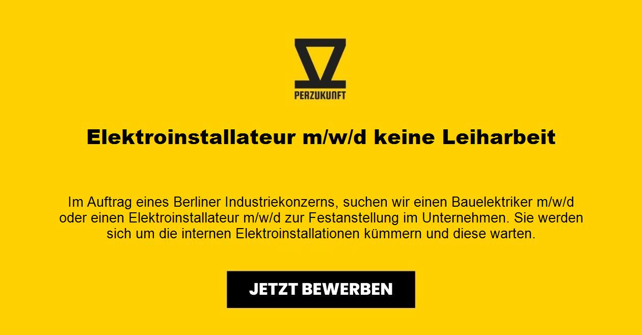 Im Auftrag eines Berliner Industriekonzerns, suchen wir einen Bauelektriker m/w/d oder einen Elektroinstallateur m/w/d zur Festanstellung im Unternehmen. Sie werden sich um die internen Elektroinstallationen kümmern und diese warten.