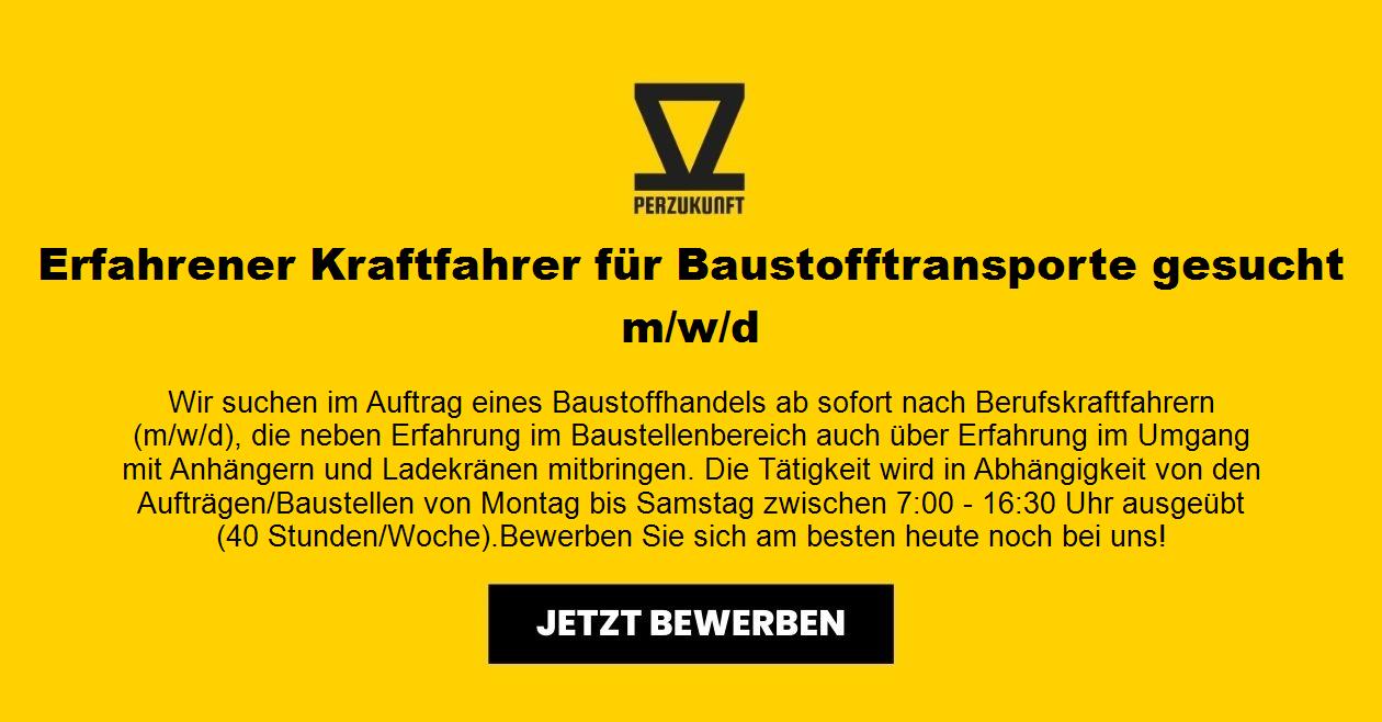 Wir suchen im Auftrag eines Baustoffhandels ab sofort nach Berufskraftfahrern (m/w/d), die neben Erfahrung im Baustellenbereich auch über Erfahrung im Umgang mit Anhängern und Ladekränen mitbringen. Die Tätigkeit wird in Abhängigkeit von den Aufträgen/Baustellen von Montag bis Samstag zwischen 7:00 - 16:30 Uhr ausgeübt (40 Stunden/Woche). Bewerben Sie sich am besten heute noch bei uns!