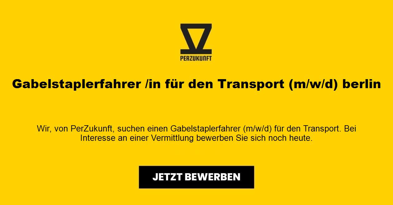 Wir, von PerZukunft, suchen einen Gabelstaplerfahrer (m/w/d) für den Transport. Bei Interesse an einer Vermittlung bewerben Sie sich noch heute.