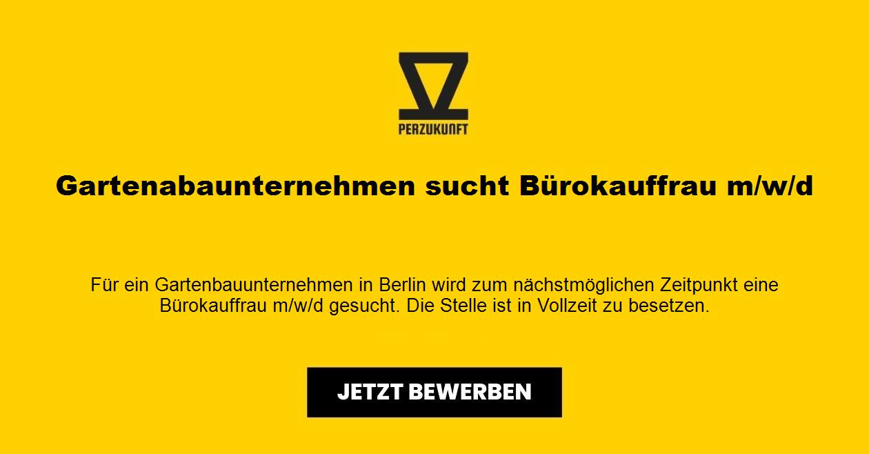 Wir suchen aktuell Sie als Bürokaufmann/-frau für den Bezirk Steglitz. Wir, PerZukunft Arbeitsvermittlung GmbH & Co KG in der Filiale Steglitz, sind von DEKRA geprüft und als Träger nach AZAV mit der Zertifizierungsnummer 31T1112195/2 zugelassen. Als private Arbeitsvermittlung arbeiten wir mit den Aktivierungs- und Vermittlungsgutscheinen der Agentur für Arbeit oder des Jobcenters. Zudem kooperieren wir mit einigen unserer Kunden im Bereich Büro-Verwaltung, welche die Kosten für die erfolgreiche Vermittlung tragen. Mit dem Absenden der Bewerbungsunterlagen erklären Sie sich damit einverstanden, dass Ihre Daten im Rahmen unserer Vermittlertätigkeit elektronisch verarbeitet und gespeichert werden. https://www.perzukunft.de/job/gartenabaunternehmen-sucht-burokauffrau-m-w-d-1201610000779832