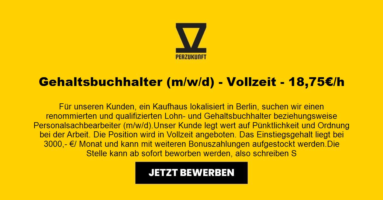 Für unseren Kunden, ein Kaufhaus lokalisiert in Berlin, suchen wir einen renommierten und qualifizierten Lohn- und Gehaltsbuchhalter beziehungsweise Personalsachbearbeiter (m/w/d). Unser Kunde legt Wert auf Pünktlichkeit und Ordnung bei der Arbeit. Die Position wird in Vollzeit angeboten. Die Stelle kann ab sofort beworben werden, also schreiben Sie uns bei Interesse.