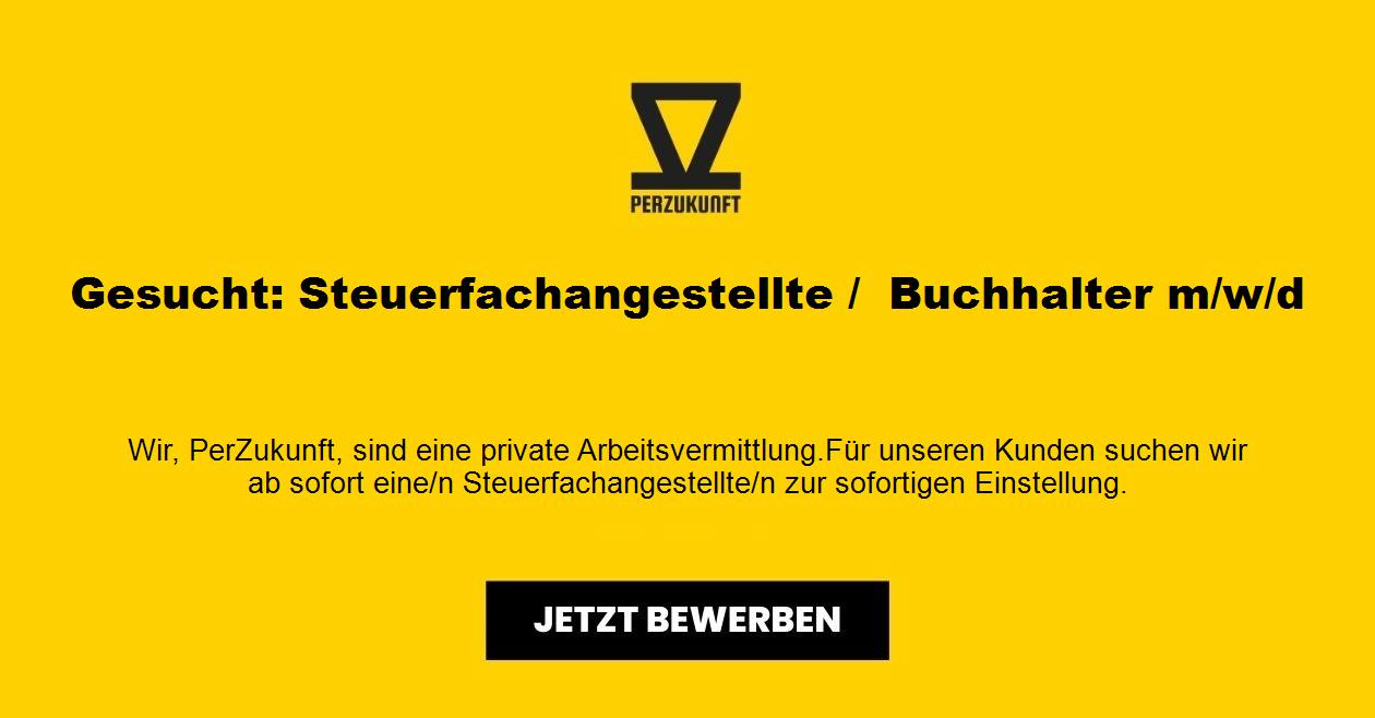 Wir suchen aktuell Sie als Steuerfachangestellte/r für den Bezirk Steglitz. Wir, PerZukunft Arbeitsvermittlung GmbH & Co KG in der Filiale Steglitz, sind von DEKRA geprüft und als Träger nach AZAV mit der Zertifizierungsnummer 31T1112195/2 zugelassen. Als private Arbeitsvermittlung arbeiten wir mit den Aktivierungs- und Vermittlungsgutscheinen der Agentur für Arbeit oder des Jobcenters. Zudem kooperieren wir mit einigen unserer Kunden im Bereich Finance, welche die Kosten für die erfolgreiche Vermittlung tragen. Mit dem Absenden der Bewerbungsunterlagen erklären Sie sich damit einverstanden, dass Ihre Daten im Rahmen unserer Vermittlertätigkeit elektronisch verarbeitet und gespeichert werden. https://www.perzukunft.de/job/gesucht-steuerfachangestellte-buchhalter-m-w-d-1201610000796028
