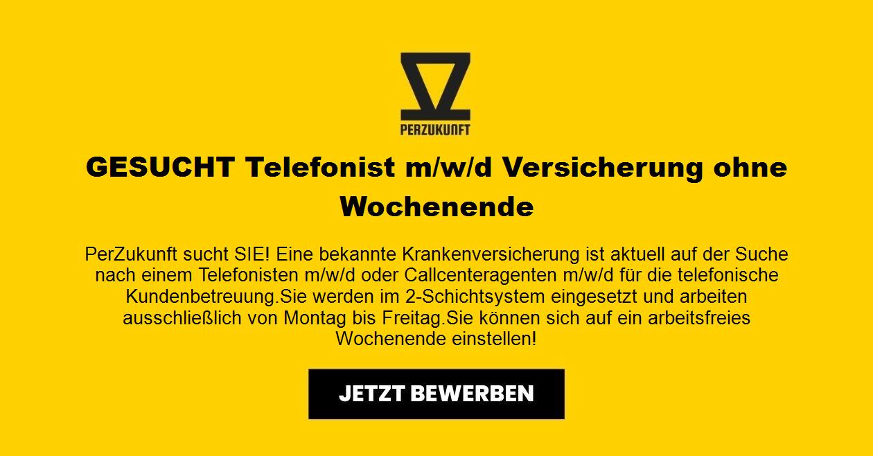 PerZukunft sucht SIE! Eine bekannte Krankenversicherung ist aktuell auf der Suche nach einem Telefonisten m/w/d oder Callcenteragenten m/w/d für die telefonische Kundenbetreuung. Sie werden im 2-Schichtsystem eingesetzt und arbeiten ausschließlich von Montag bis Freitag. Sie können sich auf ein arbeitsfreies Wochenende einstellen!