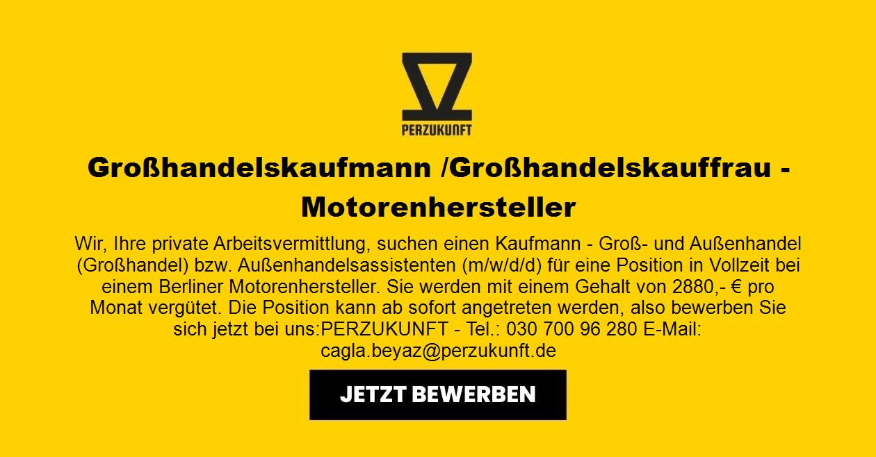 Wir, suchen einen Kaufmann - Groß- und Außenhandel (Großhandel) bzw. Außenhandelsassistenten (m/w/d/d) für eine Position in Vollzeit bei einem Berliner Motorenhersteller. Die Position kann ab sofort angetreten werden, also bewerben Sie sich jetzt bei uns: