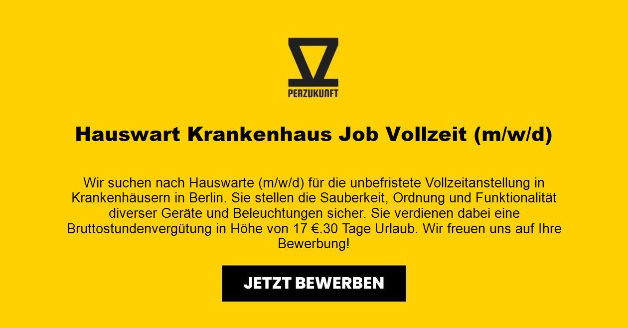 Wir suchen nach Hauswarte (m/w/d) für die unbefristete Vollzeitanstellung in Krankenhäusern in Berlin. Sie stellen die Sauberkeit, Ordnung und Funktionalität diverser Geräte und Beleuchtungen sicher. Sie verdienen dabei eine Bruttostundenvergütung in Höhe von 19,40 €. 32,05 Tage Urlaub. Wir freuen uns auf Ihre Bewerbung!