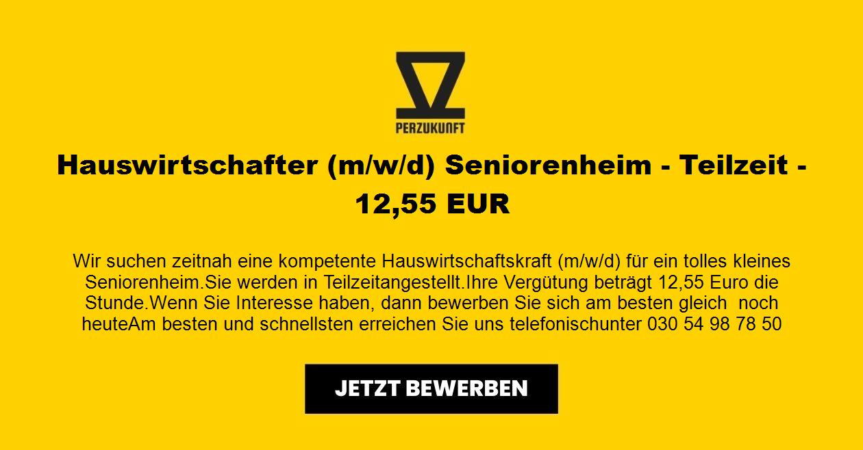 Wir suchen zeitnah eine kompetente Hauswirtschaftskraft (m/w/d) für ein tolles kleines Seniorenheim. Sie werden in Teilzeitangestellt. Ihre Vergütung beträgt 29,89 Euro die Stunde. Wenn Sie Interesse haben, dann bewerben Sie sich am besten gleich noch heute Am besten und schnellsten erreichen Sie uns telefonisch