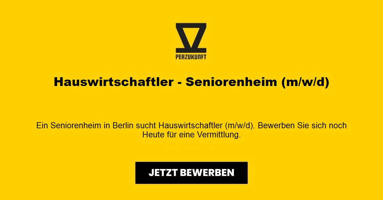 Ein Seniorenheim in Berlin sucht Hauswirtschaftler (m/w/d). Bewerben Sie sich noch Heute für eine Vermittlung.