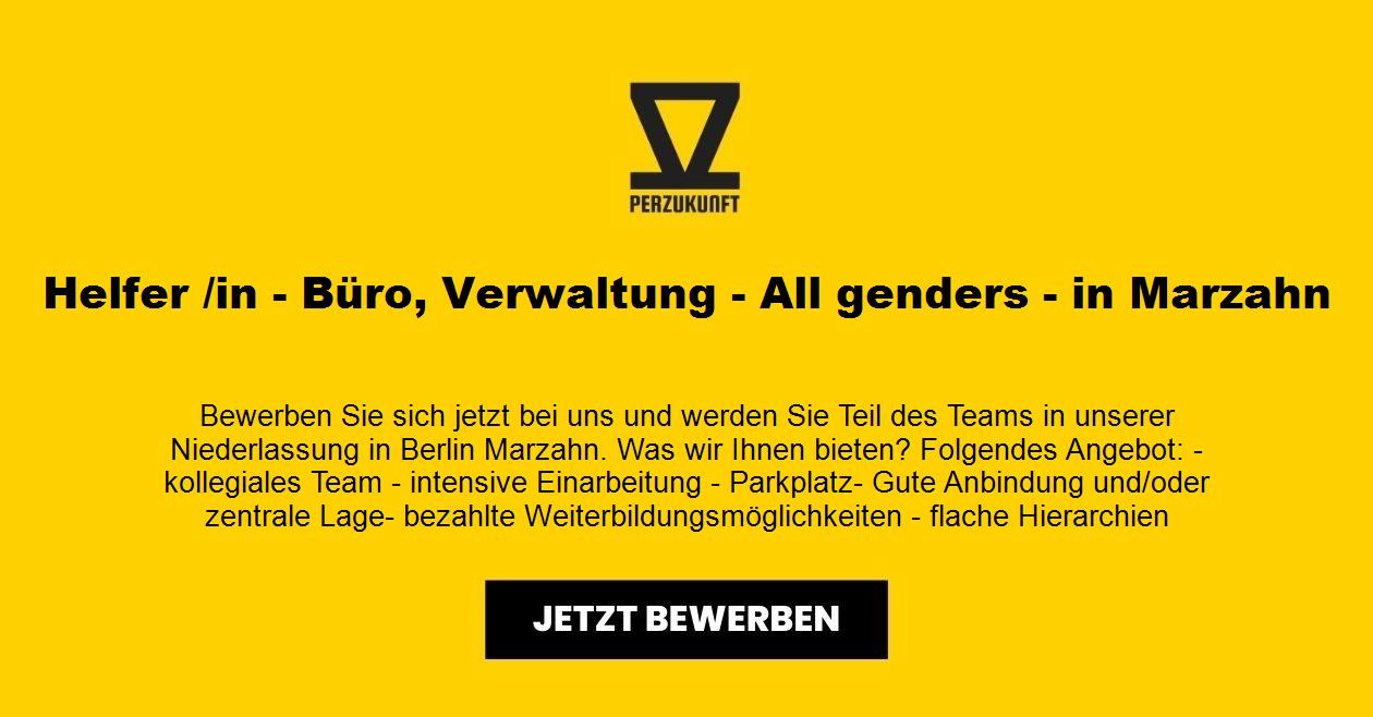 Bewerben Sie sich jetzt bei uns und werden Sie Teil des Teams in unserer Niederlassung in Berlin Marzahn. Was wir Ihnen bieten? Folgendes Angebot: - kollegiales Team - intensive Einarbeitung - Parkplatz - Gute Anbindung und/oder zentrale Lage - bezahlte Weiterbildungsmöglichkeiten - flache Hierarchien