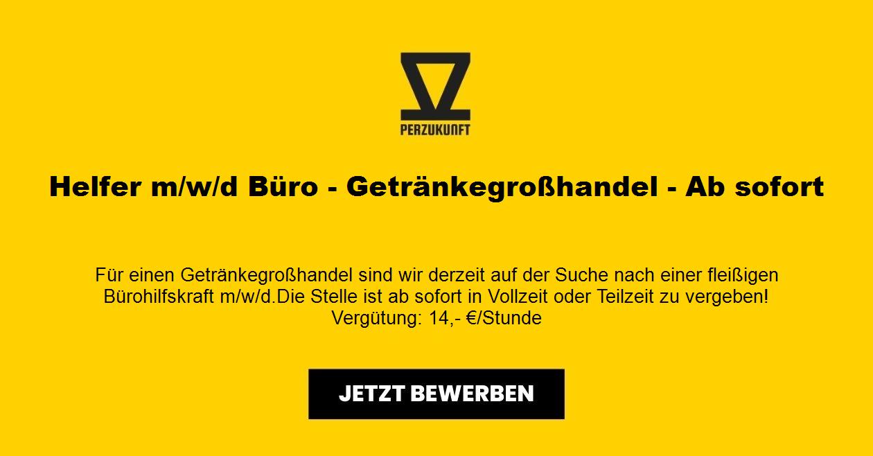 Für einen Getränkegroßhandel sind wir derzeit auf der Suche nach einer fleißigen Bürohilfskraft m/w/d. Die Stelle ist ab sofort in Vollzeit oder Teilzeit zu vergeben! Vergütung: 24,97 €/Stunde