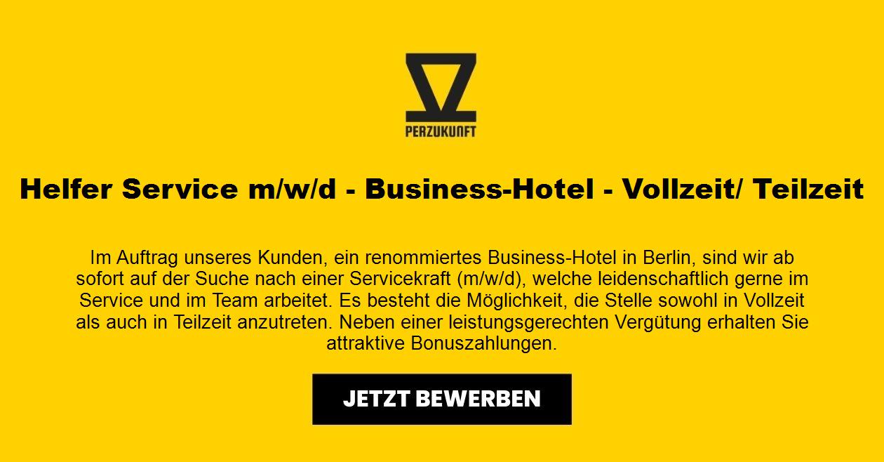 Im Auftrag unseres Kunden, ein renommiertes Business-Hotel in Berlin, sind wir ab sofort auf der Suche nach einer Servicekraft (m/w/d), welche leidenschaftlich gerne im Service und im Team arbeitet. Es besteht die Möglichkeit, die Stelle sowohl in Vollzeit als auch in Teilzeit anzutreten. Neben einer leistungsgerechten Vergütung erhalten Sie (attraktive) Bonuszahlungen.