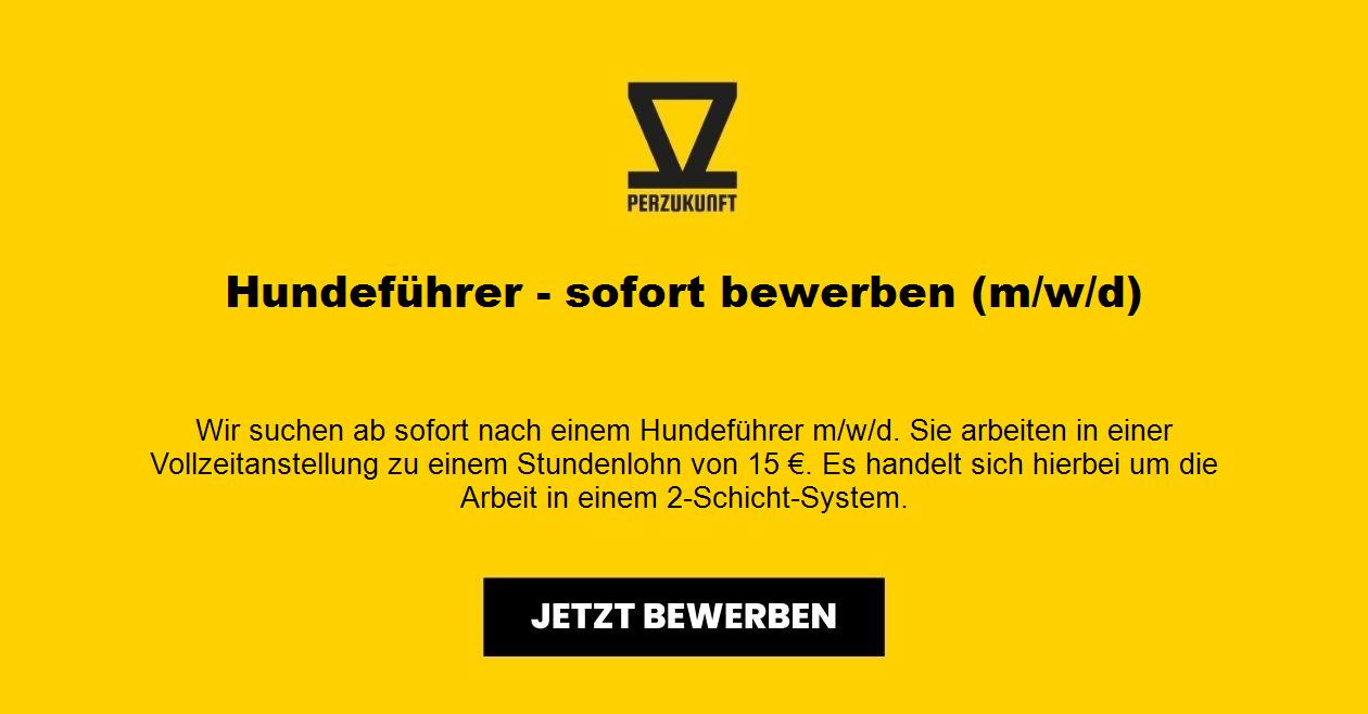 Wir suchen ab sofort nach einem Hundeführer m/w/d. Sie arbeiten in einer Vollzeitanstellung zu einem Stundenlohn von 17,11 €. Es handelt sich hierbei um die Arbeit in einem 2-Schicht-System.