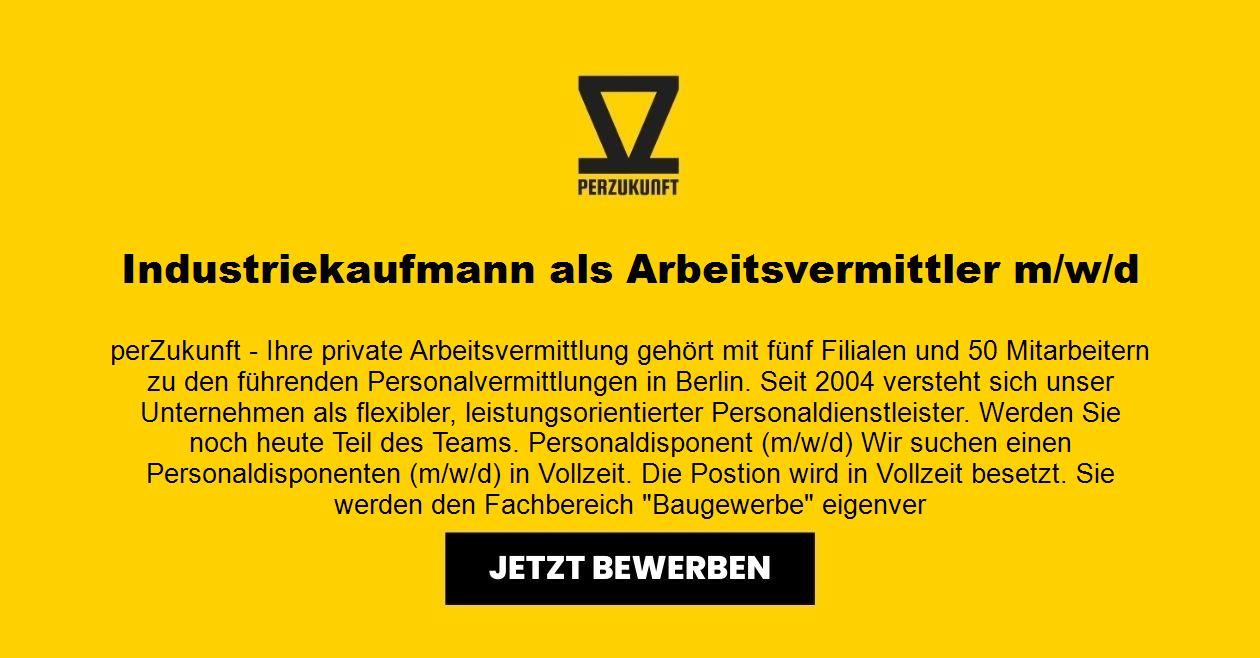 perZukunft - Ihre private Arbeitsvermittlung gehört mit fünf Filialen und 50 Mitarbeitern zu den führenden Personalvermittlungen in Berlin. Seit 2004 versteht sich unser Unternehmen als flexibler, leistungsorientierter Personaldienstleister. Werden Sie noch heute Teil des Teams. Personaldisponent (m/w/d) Wir suchen einen Personaldisponenten (m/w/d) in Vollzeit. Die Postion wird in Vollzeit besetzt. Sie werden den Fachbereich "Baugewerbe" eigenverantwortlich leiten.