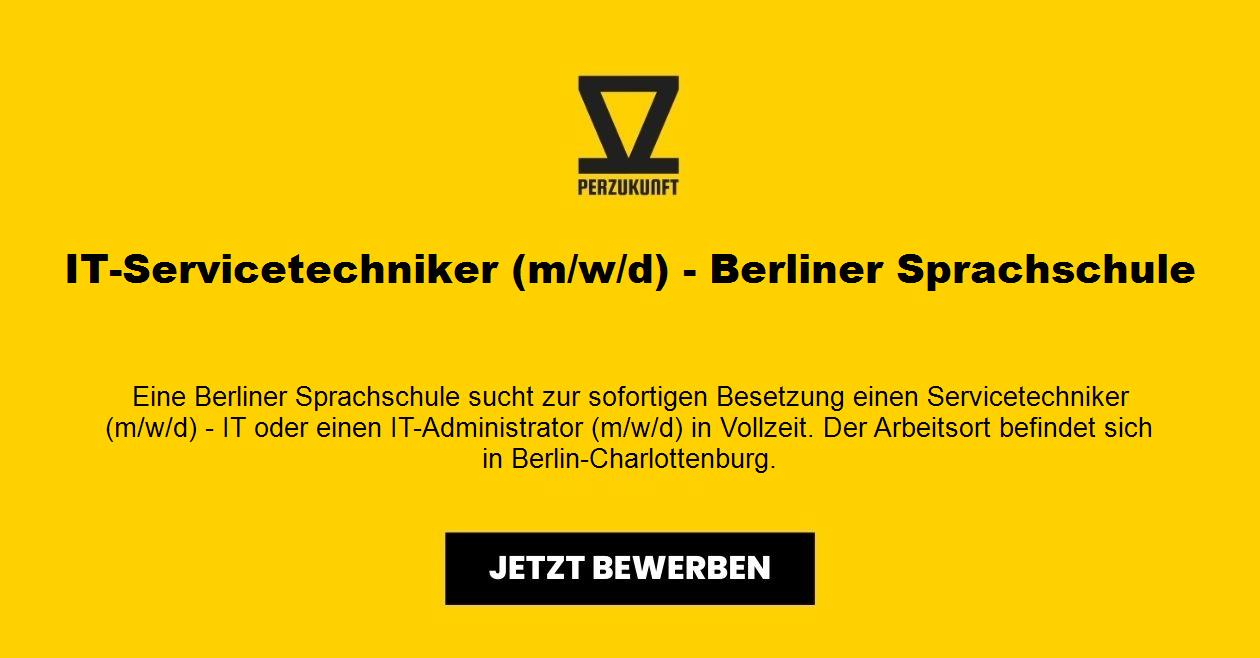 Eine Berliner Sprachschule sucht zur sofortigen Besetzung einen Servicetechniker (m/w/d) - IT oder einen IT-Administrator (m/w/d) in Vollzeit. Der Arbeitsort befindet sich in Berlin-Charlottenburg.