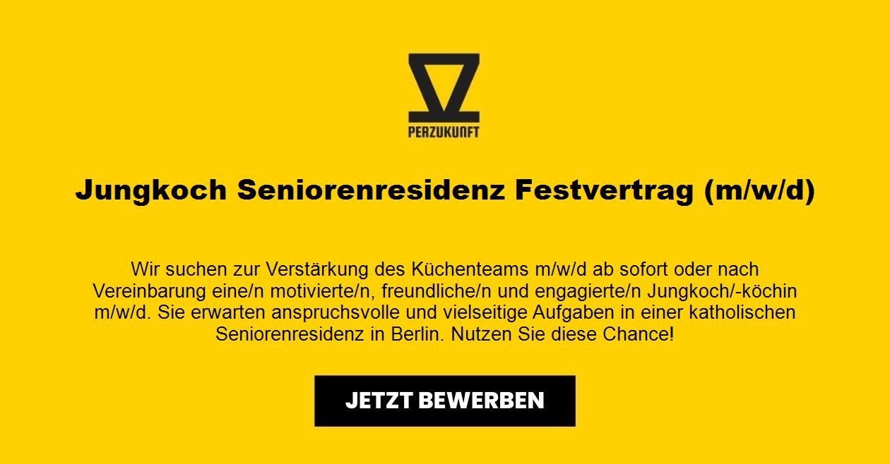 Wir suchen zur Verstärkung des Küchenteams m/w/d ab sofort oder nach Vereinbarung eine/n motivierte/n, freundliche/n und engagierte/n Jungkoch/-köchin (m/w/d). Sie erwarten anspruchsvolle und vielseitige Aufgaben in einer katholischen Seniorenresidenz in Berlin. Nutzen Sie diese Chance!