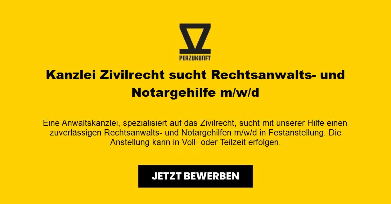 Eine Anwaltskanzlei, spezialisiert auf das Zivilrecht, sucht mit unserer Hilfe einen zuverlässigen Rechtsanwalts- und Notargehilfen m/w/d in Festanstellung. Die Anstellung kann in Voll- oder Teilzeit erfolgen.