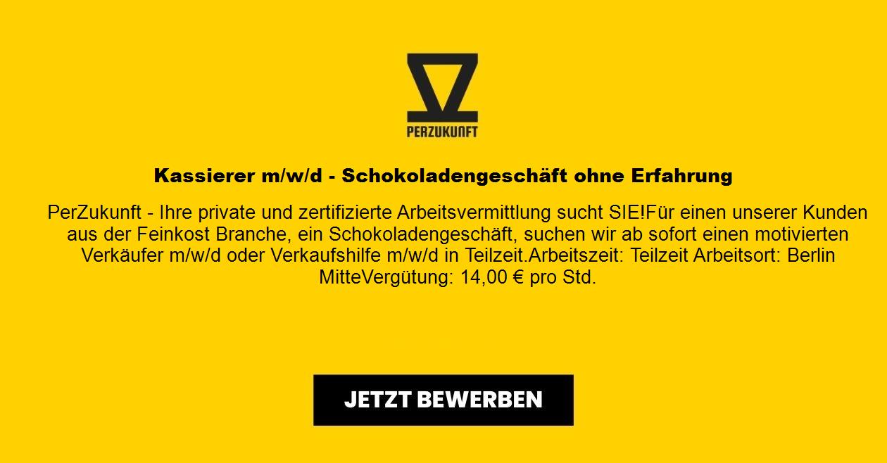 PerZukunft - Ihre private und zertifizierte Arbeitsvermittlung sucht SIE! Für einen unserer Kunden aus der Feinkost Branche, ein Schokoladengeschäft, suchen wir ab sofort einen motivierten Verkäufer m/w/d oder Verkaufshilfe m/w/d in Teilzeit. Arbeitszeit: Teilzeit Arbeitsort: Berlin Mitte Vergütung: 24,97 € pro Std. Kassierer (m/w/d) Schokoladengeschäft - ohne Erfahrung Kassierer m/w/d - Schokoladengeschäft ohne Erfahrung Kassierer m/w/d Schokoladengeschäft ohne Erfahrung