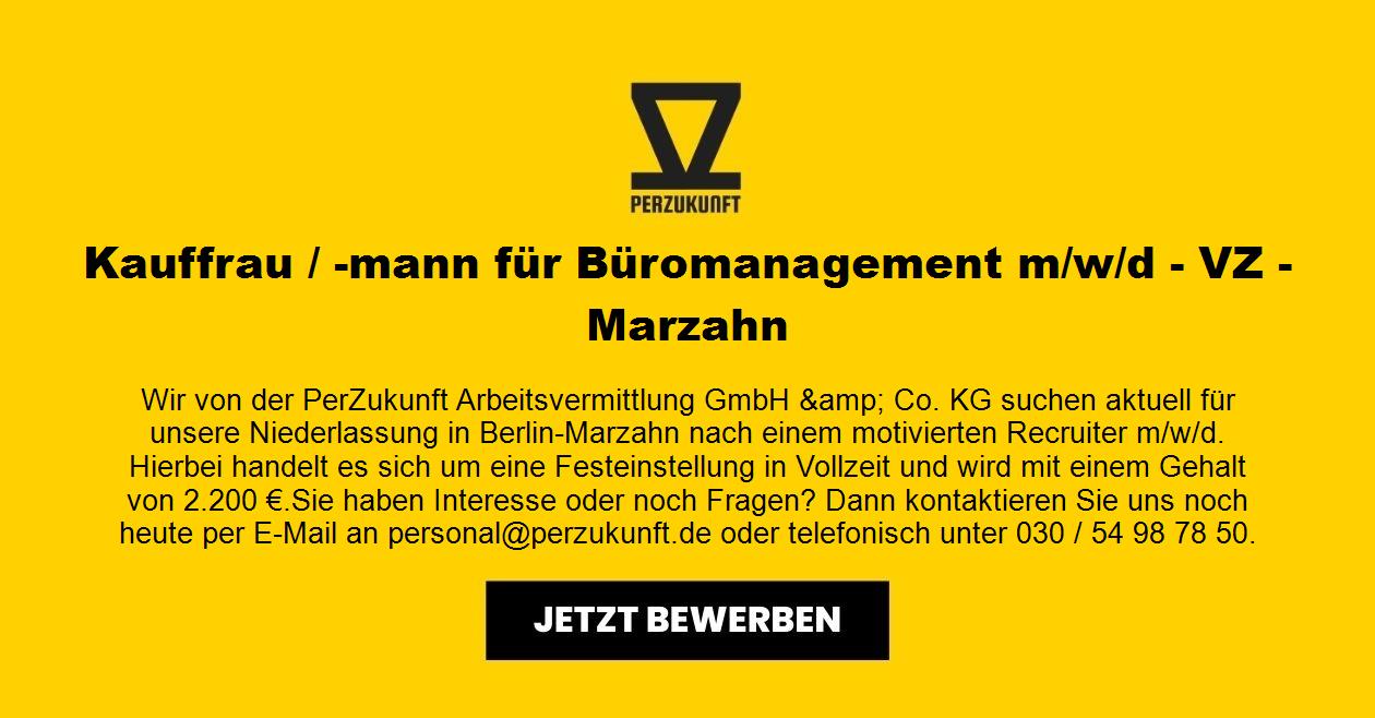 Wir von der PerZukunft Arbeitsvermittlung GmbH Co. KG suchen aktuell für unsere Niederlassung in Berlin-Marzahn nach einem motivierten Recruiter m/w/d. Hierbei handelt es sich um eine Festeinstellung in Vollzeit und wird mit einem Gehalt von 5239,31 €.