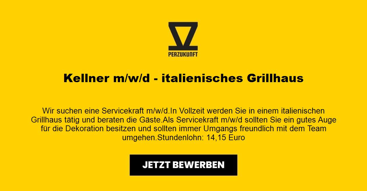 Wir suchen eine Servicekraft m/w/d. In Vollzeit werden Sie in einem italienischen Grillhaus tätig und beraten die Gäste. Als Servicekraft m/w/d sollten Sie ein gutes Auge für die Dekoration besitzen und sollten immer Umgangs freundlich mit dem Team umgehen. Stundenlohn: 17,25 Euro