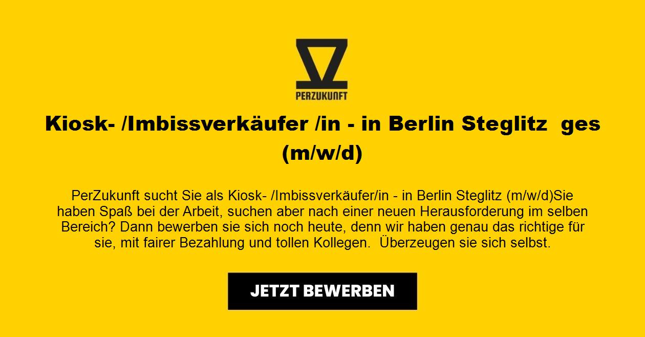 PerZukunft sucht Sie als Kiosk- /Imbissverkäufer/in - in Berlin Steglitz (m/w/d) Sie haben Spaß bei der Arbeit, suchen aber nach einer neuen Herausforderung im selben Bereich? Dann bewerben sie sich noch heute, denn wir haben genau das richtige für sie, mit fairer Bezahlung und tollen Kollegen. Überzeugen sie sich selbst.