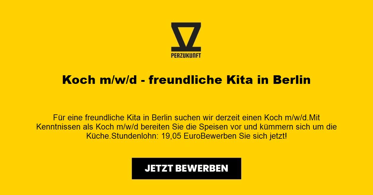 Für eine freundliche Kita in Berlin suchen wir derzeit einen Koch m/w/d. Mit Kenntnissen als Koch m/w/d bereiten Sie die Speisen vor und kümmern sich um die Küche. Stundenlohn: 21,74 Euro Bewerben Sie sich jetzt!