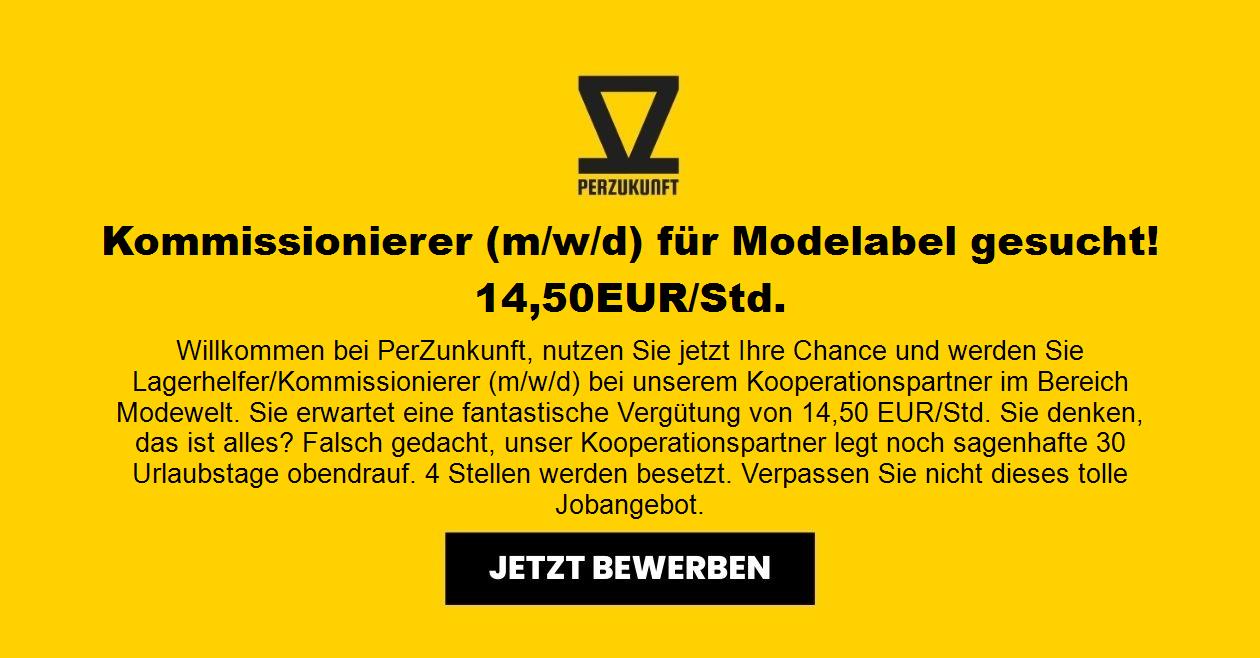 Willkommen bei PerZunkunft, nutzen Sie jetzt Ihre Chance und werden Sie Lagerhelfer/Kommissionierer (m/w/d) bei unserem Kooperationspartner im Bereich Modewelt. Sie erwartet eine fantastische Vergütung von 25,85 EUR/Std. Sie denken, das ist alles? Falsch gedacht, unser Kooperationspartner legt noch sagenhafte 30 Urlaubstage obendrauf. 4 Stellen werden besetzt. Verpassen Sie nicht dieses tolle Jobangebot.