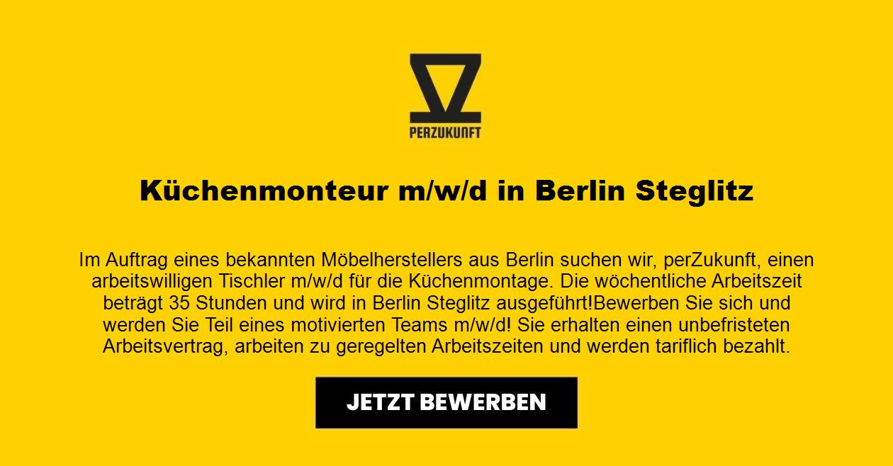 Im Auftrag eines bekannten Möbelherstellers aus Berlin suchen wir, perZukunft, einen arbeitswilligen Tischler m/w/d für die Küchenmontage. Die wöchentliche Arbeitszeit beträgt 35 Stunden und wird in Berlin Steglitz ausgeführt! Bewerben Sie sich und werden Sie Teil eines motivierten Teams m/w/d! Sie erhalten einen unbefristeten Arbeitsvertrag, arbeiten zu geregelten Arbeitszeiten und werden tariflich bezahlt.