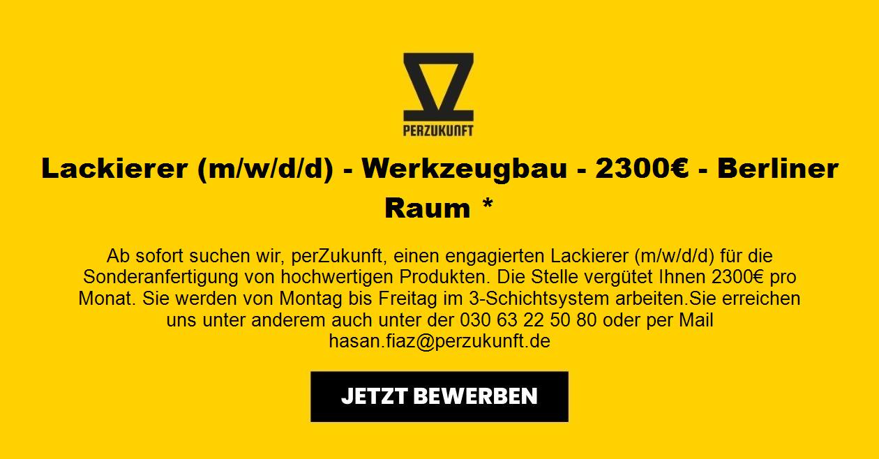Ab sofort suchen wir, perZukunft, einen engagierten Lackierer (m/w/d) für die Sonderanfertigung von hochwertigen Produkten. Die Stelle vergütet Ihnen 2625,08€ pro Monat. Sie werden von Montag bis Freitag im 3-Schichtsystem arbeiten.