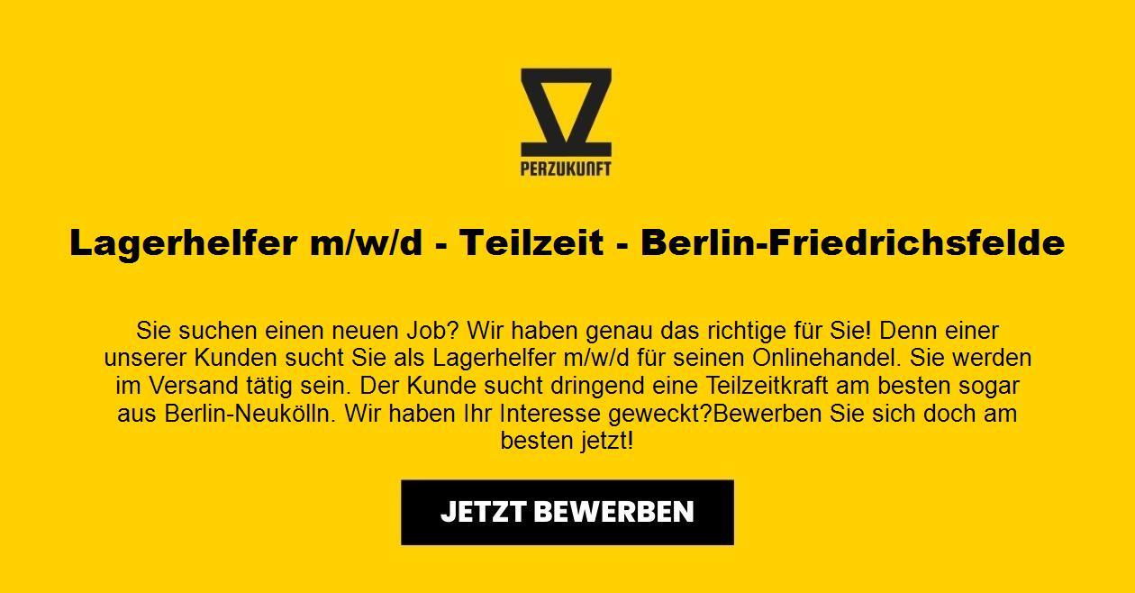 Sie suchen einen neuen Job? Wir haben genau das richtige für Sie! Denn einer unserer Kunden sucht Sie als Lagerhelfer m/w/d für seinen Onlinehandel. Sie werden im Versand tätig sein. Der Kunde sucht dringend eine Teilzeitkraft am besten sogar aus Berlin-Neukölln. Wir haben Ihr Interesse geweckt? Bewerben Sie sich doch am besten jetzt!