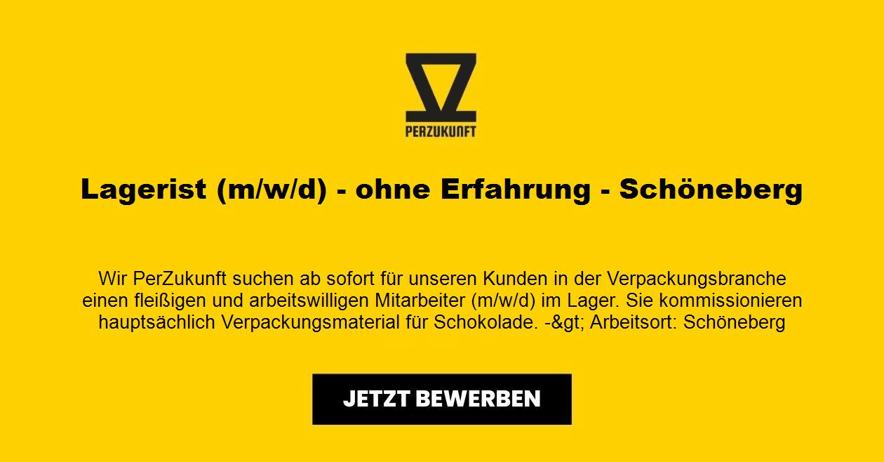 Wir PerZukunft suchen ab sofort für unseren Kunden in der Verpackungsbranche einen fleißigen und arbeitswilligen Mitarbeiter (m/w/d) im Lager. Sie kommissionieren hauptsächlich Verpackungsmaterial für Schokolade. -> Arbeitsort: Schöneberg