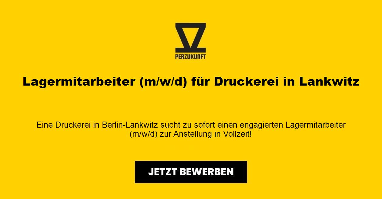 Eine Druckerei in Berlin-Lankwitz sucht zu sofort einen engagierten Lagermitarbeiter (m/w/d) zur Anstellung in Vollzeit!