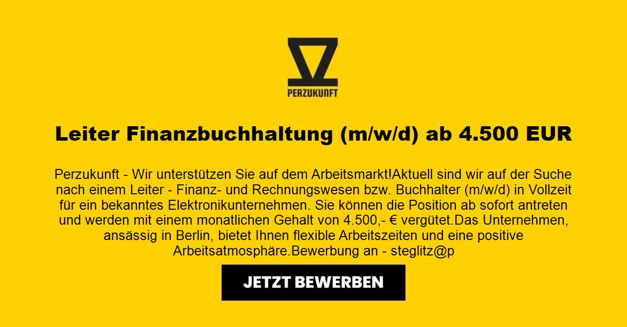 Perzukunft - Wir unterstützen Sie auf dem Arbeitsmarkt! Aktuell sind wir auf der Suche nach einem Leiter - Finanz- und Rechnungswesen bzw. Buchhalter (m/w/d) in Vollzeit für ein bekanntes Elektronikunternehmen. Sie können die Position ab sofort antreten und werden mit einem monatlichen Gehalt von 8025,03- € vergütet. Das Unternehmen, ansässig in Berlin, bietet Ihnen flexible Arbeitszeiten und eine positive Arbeitsatmosphäre.