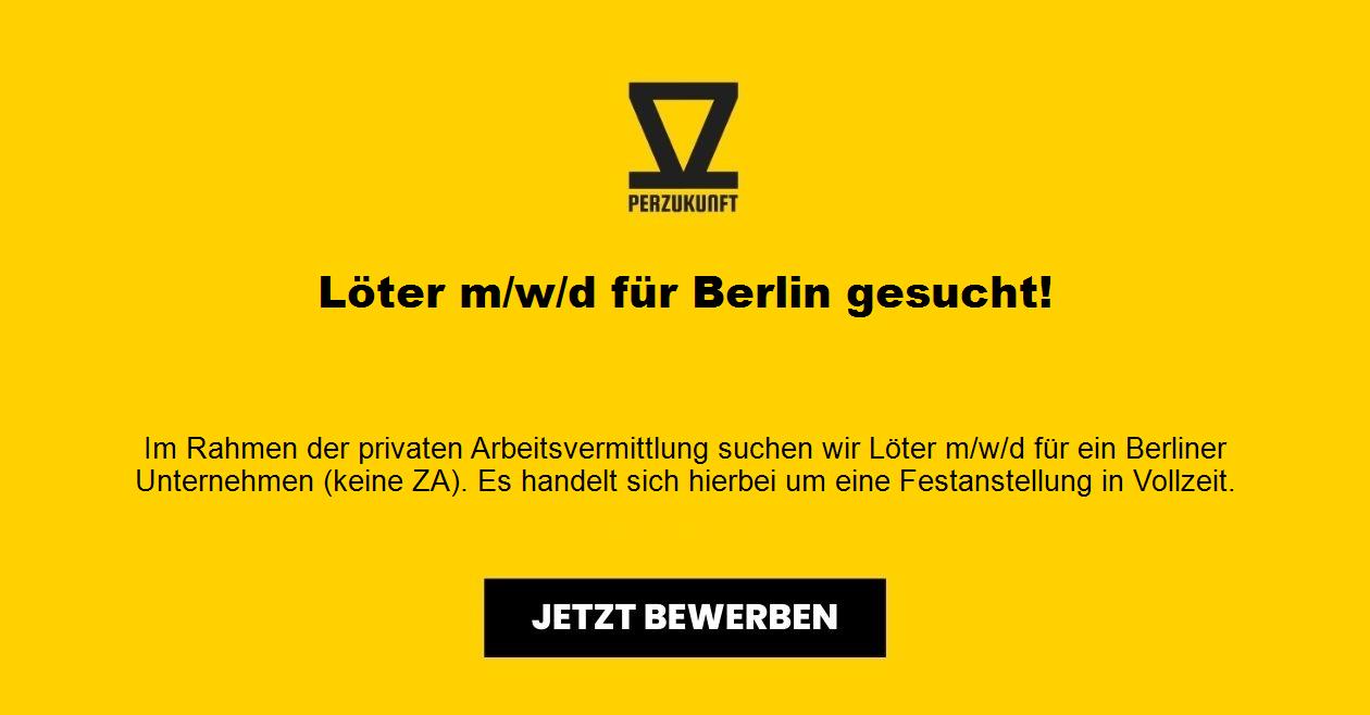 PERZUKUNFT HILFT IHNEN! Im Rahmen der privaten Arbeitsvermittlung suchen wir Löter m/w/d für ein Berliner Unternehmen (keine ZA). Es handelt sich hierbei um eine Festanstellung in Vollzeit. WIR FREUEN UNS AUF EUCH